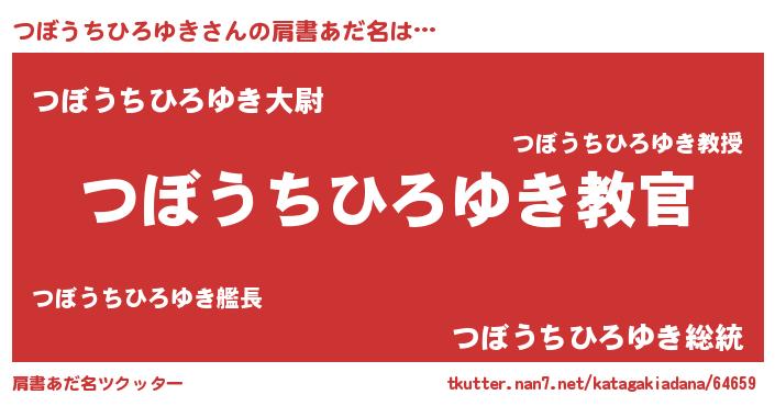 | 男性向けラノベタイトル風あだ名 | 『この素晴らしい世界につぼうちひろゆきを!』 |