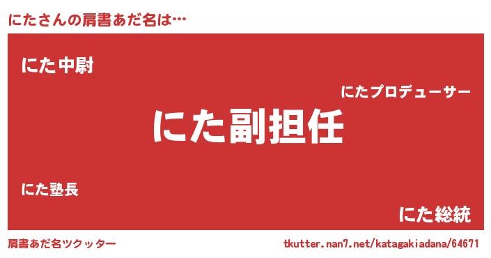 | ヘコむあだ名 | 『にた(遠い目)』『にたっ子』 |