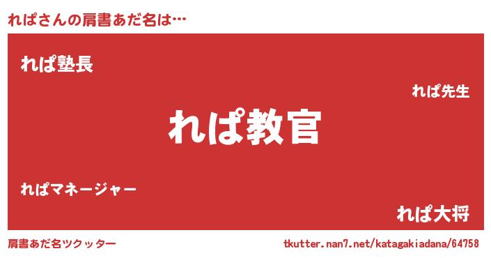 | 意味不明あだ名 | 『住所不定無職れぱ(93歳)』『永久保存れぱ』 |