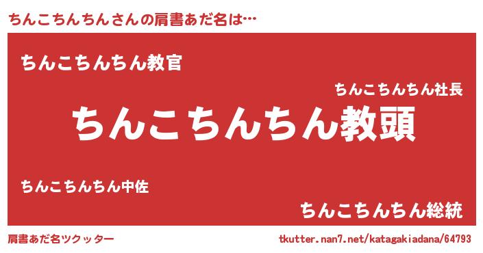 | ヒーロー風カッコイイあだ名 | 『ネオチンコチンチン』『仮面チンダー』 |