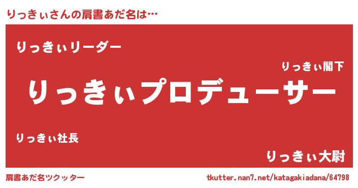 | ヒーロー風カッコイイあだ名 | 『炎刃騎士リッ』『サイバー戦士リッキィ』 |