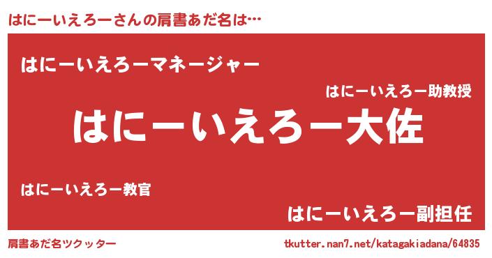 | 伝説のあだ名 | 『古より伝わる吟遊詩人はにーいえろー』 |