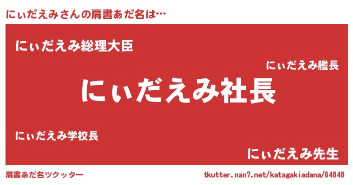 | 男性向けラノベタイトル風あだ名 | 『にぃだえみの憂鬱』 |