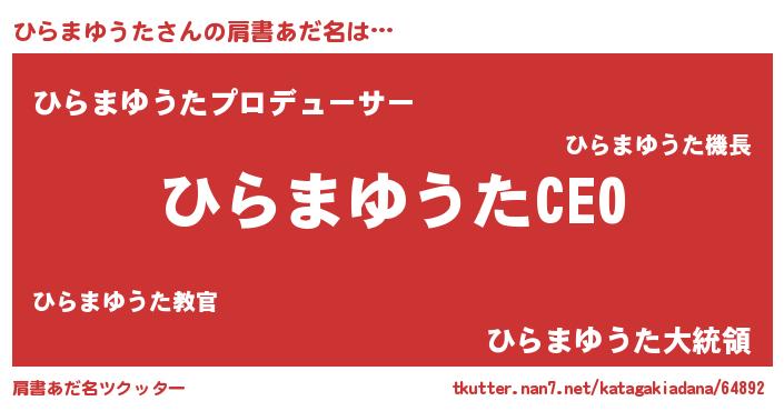 | 恥ずかしいあだ名 | 『プリティーひらまゆうた』『ひらっちょ』 |