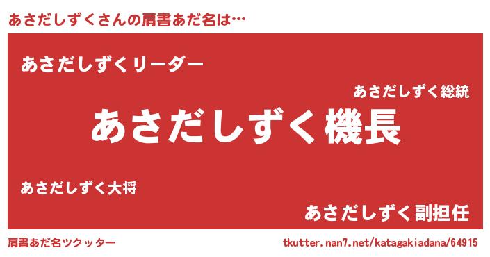 | 意味不明あだ名 | 『とにかく怪しいあさだしずく』 |