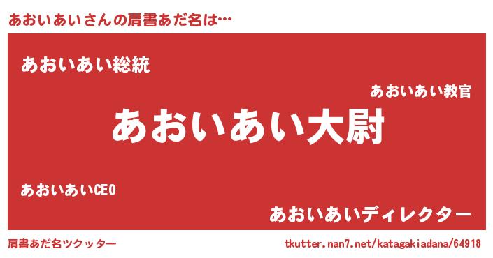 | ヒーロー風カッコイイあだ名 | 『最強戦士アオイアイ』『仮面アオダー』 |