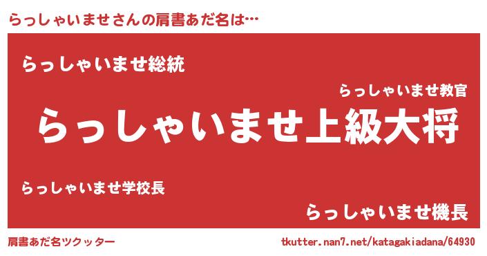| 男性向けラノベタイトル風あだ名 | 『ラッシャイマセスレイヤー』 |