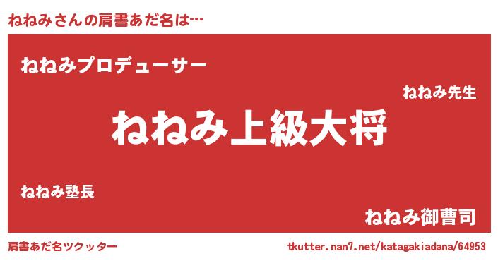 | 男性向けラノベタイトル風あだ名 | 『ねねみ~年齢イコール彼女いない歴の魔法使い~』 |