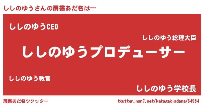 | 意味不明あだ名 | 『ペロリンししのゆう』『自称ししのゆう』 |