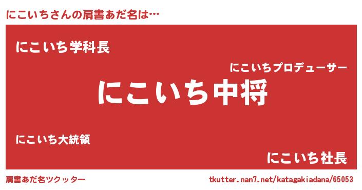 | 意味不明あだ名 | 『もやし科にこいち属』『自称にこいち』 |