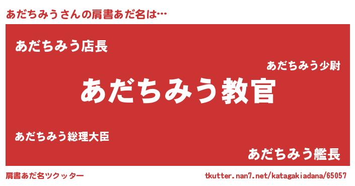 | 女子向けラノベタイトル風あだ名 | 『乙女ゲームの破滅フラグしかない悪役あだちみうに転生してしまった…』 |