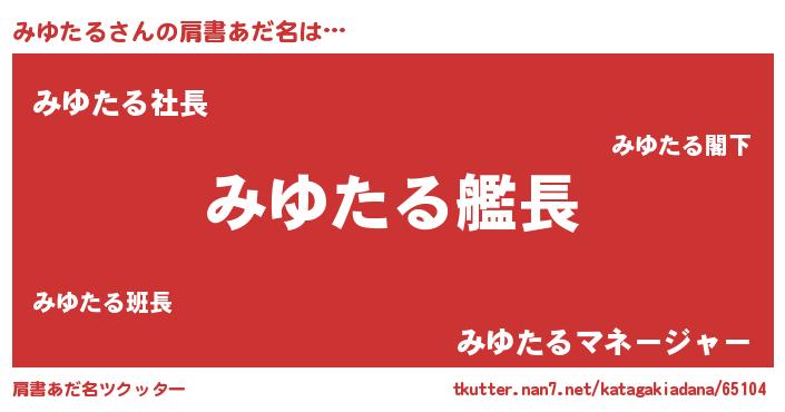 | 男性向けラノベタイトル風あだ名 | 『うちのみゆたるが世界を掌握している!』 |
