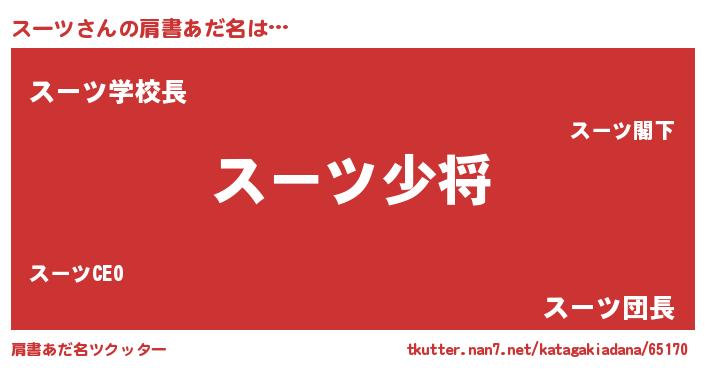 | ヒーロー風カッコイイあだ名 | 『愛の使者スーツ』『幻影騎士スー』 |