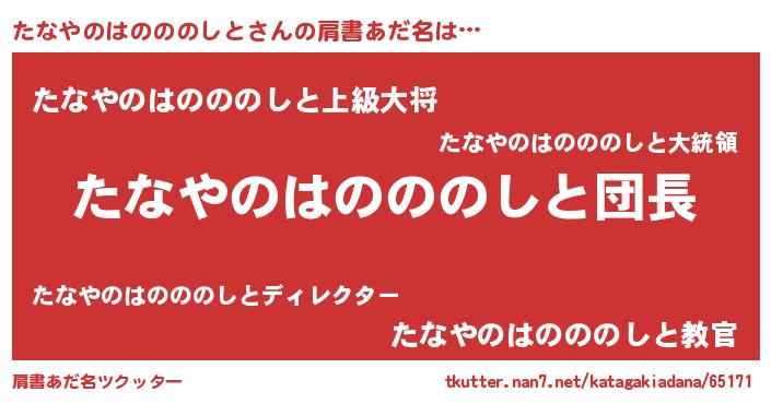 | 欧米人風あだ名 | 『ウサインたなやのはのののしと』 |