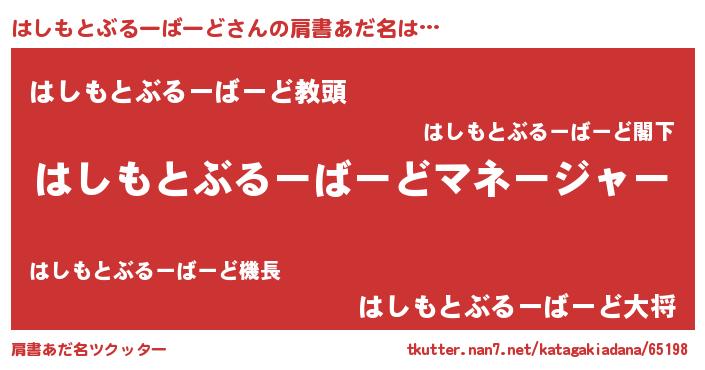| 男性向けラノベタイトル風あだ名 | 『はたらくはしもとぶるーばーどさま!』 |