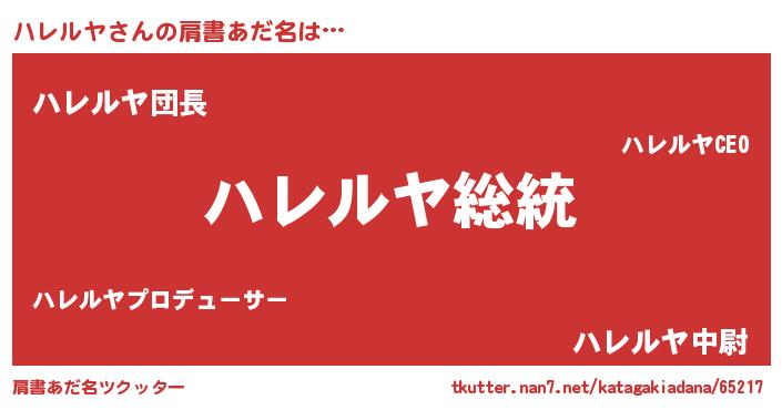 | 男性向けラノベタイトル風あだ名 | 『Re:ハレルヤから始める異世界生活』 |