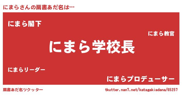 | ヒーロー風カッコイイあだ名 | 『友情の使者にまら』『究極戦士ニマラ』 |