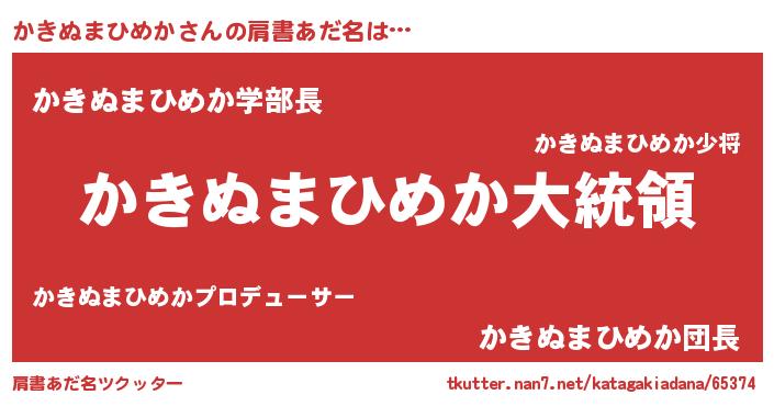 | 男性向けラノベタイトル風あだ名 | 『やはりかきぬまひめかの青春ラブコメはまちがっている 』 |