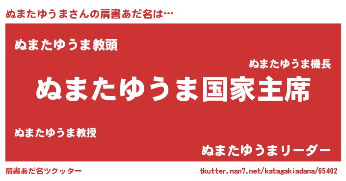 | 男性向けラノベタイトル風あだ名 | 『やはりぬまたゆうまの青春ラブコメはまちがっている 』 |