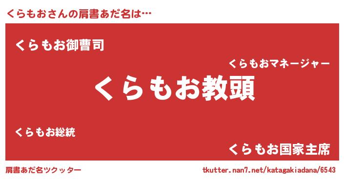 | 男性向けラノベタイトル風あだ名 | 『くらもおという概念が存在しない退屈な世界 』 |