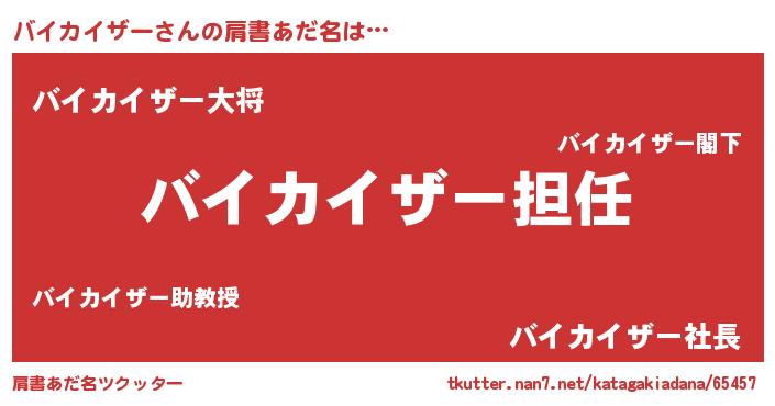 | 意味不明あだ名 | 『永久保存バイカイザー』 |