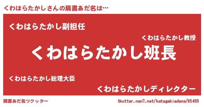| 可愛いあだ名 | 『くっわぃー』『くわはらたかしママ』 |