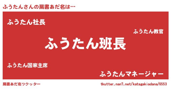 | 意味不明あだ名 | 『とにかく怪しいふうたん』 |