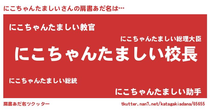 | 胡散臭い通販商品みたいなあだ名 | 『前代未聞の健康食品…その名も「にこちゃんたましい」』 |
