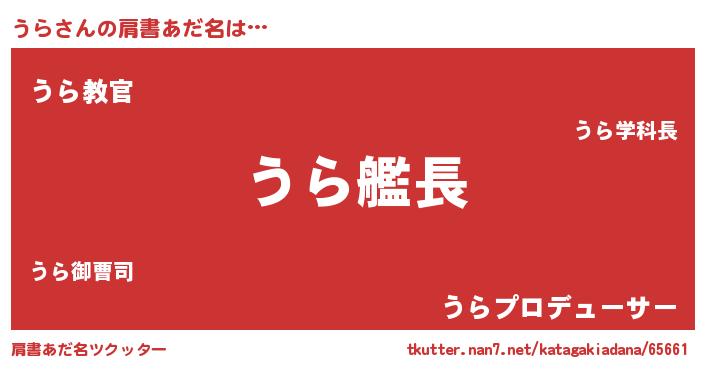 | 男性向けラノベタイトル風あだ名 | 『緋弾のウラ』『魔弾の王とうら』 |