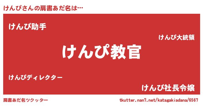 | 男性向けラノベタイトル風あだ名 | 『この素晴らしい世界にけんぴを!』 |