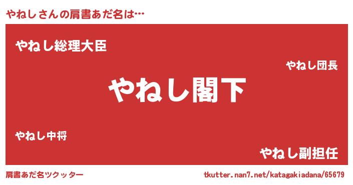 | 女子向けラノベタイトル風あだ名 | 『やねしなんてお断りですっ。』 |