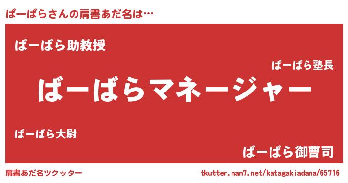 | 男性向けラノベタイトル風あだ名 | 『はたらくばーばらさま!』 |