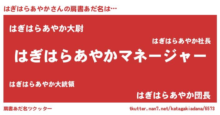 | 男性向けラノベタイトル風あだ名 | 『はたらくはぎはらあやかさま!』 |