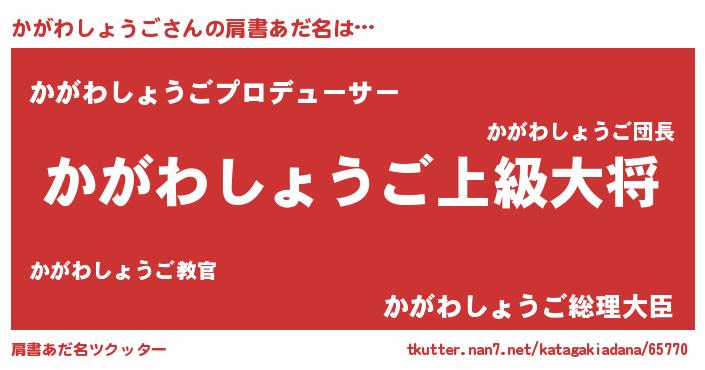 | 男性向けラノベタイトル風あだ名 | 『カガワショウゴスレイヤー』 |