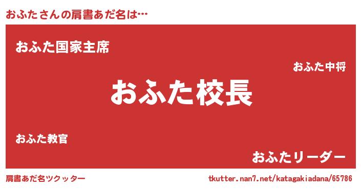 | ヒーロー風カッコイイあだ名 | 『ネオオフタ』『ウルトラおふたマン』 |
