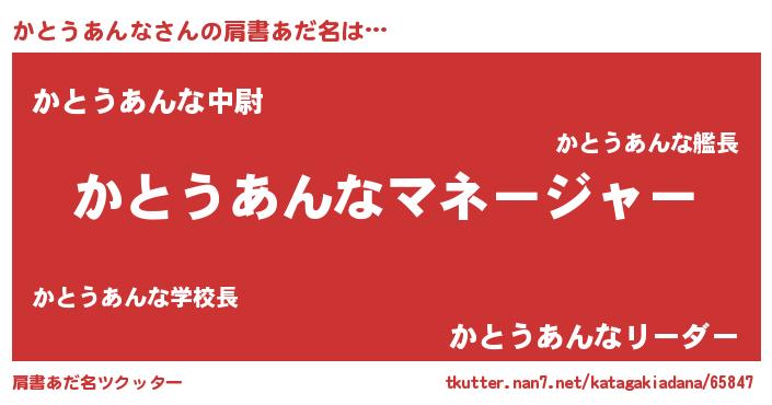 | 男性向けラノベタイトル風あだ名 | 『はたらくかとうあんなさま!』 |