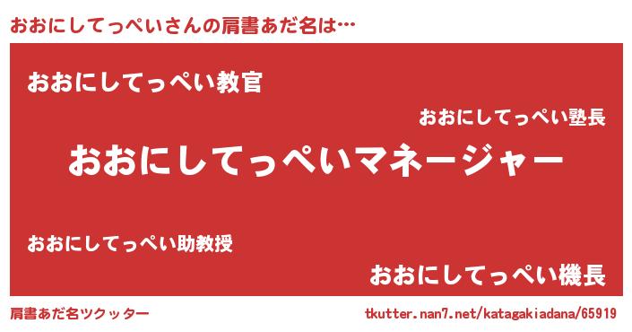 | 男性向けラノベタイトル風あだ名 | 『おおにしてっぺいに滅ぼされるだけの簡単なお仕事です』 |