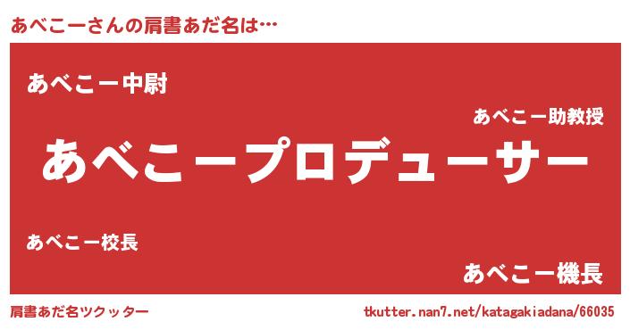 | 男性向けラノベタイトル風あだ名 | 『あべこーに滅ぼされるだけの簡単なお仕事です』 |