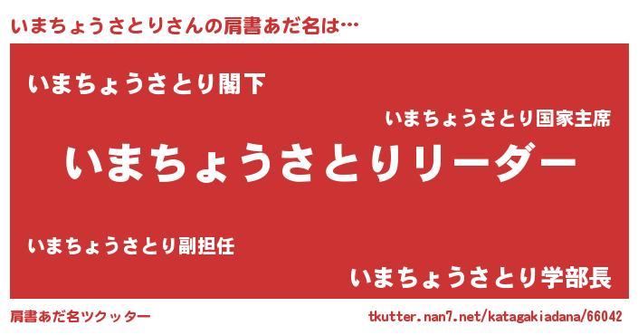 | 男性向けラノベタイトル風あだ名 | 『いまちょうさとりの嫁は女の子じゃないと思った?』 |