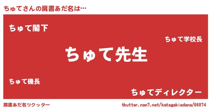 | 男性向けラノベタイトル風あだ名 | 『ちゅてという概念が存在しない退屈な世界 』 |