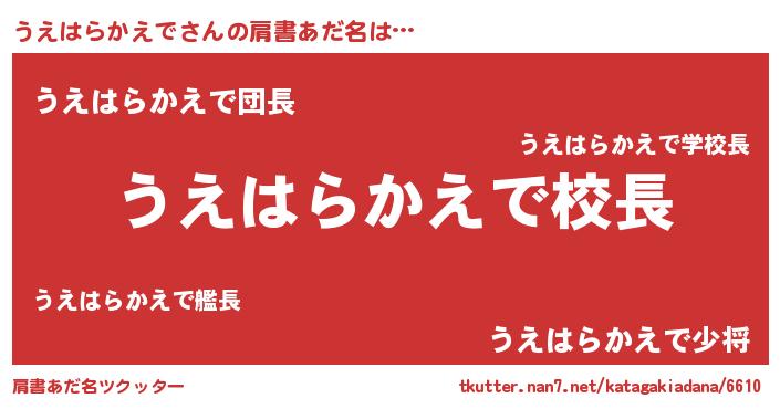 | 胡散臭い通販商品みたいなあだ名 | 『来世でも幸せになれる健康食品…その名も「うえはらかえで」』 |