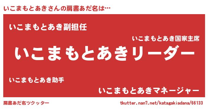 | 意味不明あだ名 | 『とにかく怪しいいこまもとあき』 |