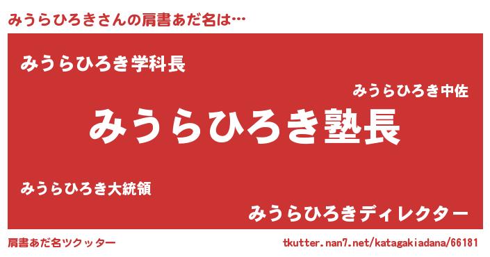 | ポケモン風あだ名 | 『ヒミウラヒロキ』『ミックウザ』 |