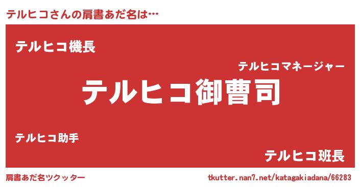 | 男性向けラノベタイトル風あだ名 | 『テルヒコの憂鬱』 |