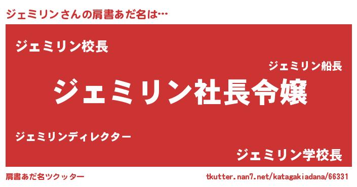 | 男性向けラノベタイトル風あだ名 | 『ジェミリンの憂鬱』『緋弾のジェミリン』 |