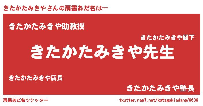 | ヘコむあだ名 | 『きたかたみきや(笑)』『きたを』 |