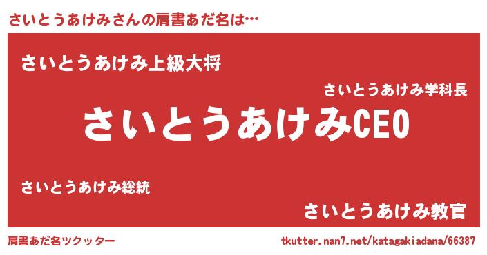 | ヒーロー風カッコイイあだ名 | 『スーパーサイトウアケミ』 |