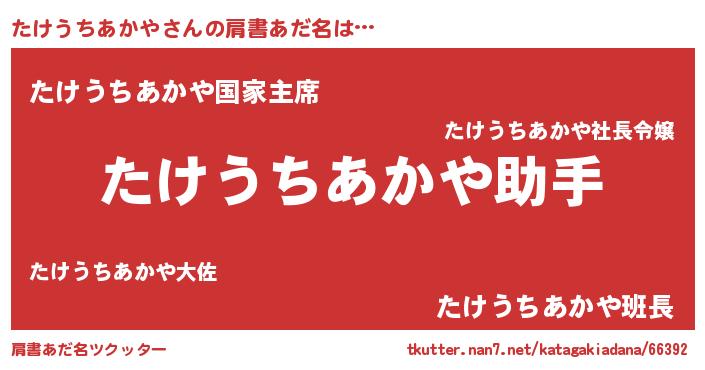 | 男性向けラノベタイトル風あだ名 | 『ノーゲーム・ノータケウチアカヤ』 |