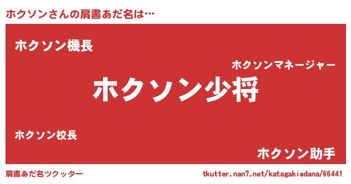 | 男性向けラノベタイトル風あだ名 | 『転生したらホクソンだった件』 |