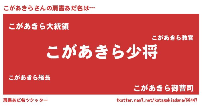 | 男性向けラノベタイトル風あだ名 | 『コガアキラスレイヤー』 |